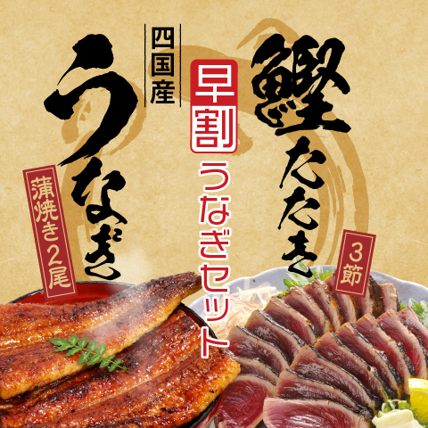 ■セット内容:鰹たたき3節(合計約840g)、20mlタレ×6袋、にんにく・しょうが×各3袋、うなぎ蒲焼き(1尾約120g)×2尾、うなぎタレ20g×4袋○賞味期限:冷凍で30日間◎合計で約9~12人前(たたき1節で約2~3人前 ・ うなぎ1尾で約1.5人前)※山椒は付いておりません