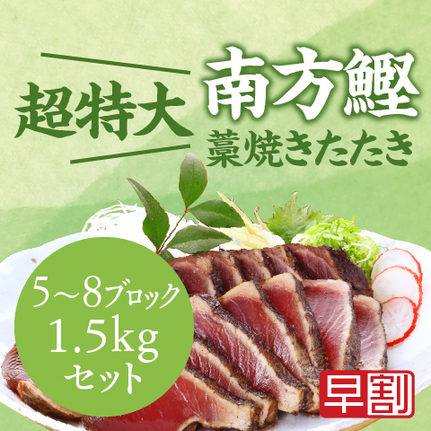■セット内容:鰹たたき超特大(ブロック)×5~8袋(合計約1.5kg)、20mlタレ×12袋、たたき丼のタレ(18ml)×3袋、にんにく・しょうが×各6袋○賞味期限:冷凍で30日間◎合計で約12人前(1袋約2~3人前)